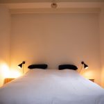 Schlafzimmer 1 Mit einem Doppeltbett, Nacht-Kaste und Leselicht und Große Kleiderschrank. Alle Betten haben Separate Matratzen, Matratzenschoner, Decken und Kopfkissen.