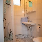 Badezimmer Mit Dusch, Toilette, schrank und Waschbecken..