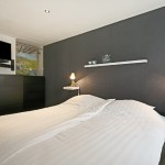 met 2 aparte dekbedden en matrassen, nachtkastjes, televisie en een grote kledingkast.
