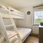 In de andere slaapkamer staat een stapelbed 140 x 200 beneden, 90 x 200 boven en een kast,