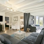 De kamer met de slaapbank kan met een gordijn van de woonkamer worden gescheiden.
