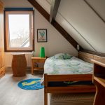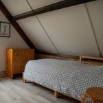 Op de bovenverdieping bevinden zich vier slaapkamers met laminaat. Op twee slaapkamers staat een tweepersoonsbed (160×200). Op een slaapkamer een eenpersoonsbed (90 x 200) en bureau. Op een slaapkamer een uitschuifbaar bed waar een tweepersoonsbed van te maken is. Alle bedden zijn voorzien van eenpersoons dekbedden en kussens. Op alle slaapkamers is lig- of legruimte voor kleding aanwezig. Ook is er boven een apart toilet. Dit huis heeft een CV, zodat hier het hele jaar door vakantie houden mogelijk is, de temperatuur is te regelen via de thermostaat in de woonkamer aan de wand.