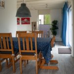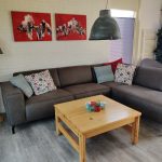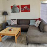 Wanneer u via de voordeur binnenkomt, komt u in de hal terecht. Van hieruit heeft u links toegang tot de badkamer met wastafel, inloopdouche en toilet en rechts de woonkamer met open keuken. In het woongedeelte heeft u 2 grote banken en twee fauteuils. Op de grote TV is kabeltelevisie van Ziggo met veel buitenlandse zenders. Ook is er een smartbox met Netflix en Youtube, tevens is er een stereotoren. In de hal, woonkamer en keuken ligt een pvc-vloer. Door de tuindeuren komt u op het terras uit met een 6 persoons tuinset met parasol, en een overkapping direct aan het huis. In de schuur staat een wasmachine droger en BBQ. In de achtertuin staat een trampoline en een blokhut.