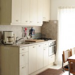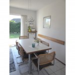 In der Küche ist ein kompletter Küchenblock eingebaut, Hänge- und Unterschränke, Spülbecken, Geschirrspülmaschine, Dunstabzugshaube mit Wrasenabzug, sowie ein 4-fl. Gasherd, Backofen/ Mikrowellengerät, Kaffeemaschine, Wasserkocher, Toaster, Kühlschrank mit Gefrierfach, Töpfen und Pfannen, für 6 Personen ausreichend Geschirr, Gläser, Bestecke, großem Tisch für bis zu 6 Personen mit passenden Stühlen. Durch die Terrassentür erreichen Sie den schone umschlossenen Garten.