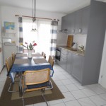 Open keuken: In de keuken staat een koelkast met groot vriesvak, vaatwasser, magnetron met gril, Keramische kookplaat, oven, afzuigkap, koffiezetapparaat, waterkoker en toaster. En natuurlijk het benodigde serviesgoed, bestek, glasservies en kookgerei, in de keuken staat een grote eettafel voor 6 personen met bijpassende stoelen.