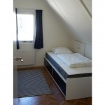 Bovenverdieping: Op de bovenverdieping ligt Laminaat en bevinden zich twee slaapkamers met Laminaat, die zijn ingericht met een tweepersoons bed 140×200 en 2 aparte bedden van 90×200. Alle bedden zijn voorzien van eenpersoons dekbedden en kussens.