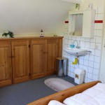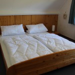 Obergeschoss/Schlafbereich In der oberen Etage gibt es drei Schlafzimmern (1, 2, 3) und eine zweite, separate Toilette. Schlafzimmer (1) ist etwas größer als die anderen beiden Schlafzimmer und hat ein Doppelbett (180×200 cm), Waschbecken, Sessel, Baby Reisebett und einen Einbauschrank. Das Schlafzimmer (2) je 2 Einzelbetten (90×200 cm) und eine Kommode. Das Schlafzimmer (3) verfügt über ein Bett (90×200 cm) mit ausziehbarem Unterteil und einem Kleiderschrank. Alle Betten haben Matratzen mit Matratzenschoner, Decken und Kopfkissen.