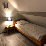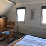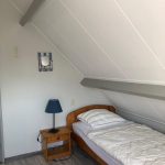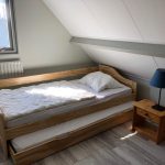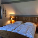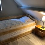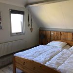Obergeschoss/Schlafbereich In der oberen Etage mit Laminat boden gibt es drei Schlafzimmern (1, 2, 3) und eine zweite, separate Toilette. Schlafzimmer (1) ist etwas größer als die anderen beiden Schlafzimmer und hat ein Doppelbett (180×200 cm), einen Einbauschrank und ein Waschbecken. Das Schlafzimmer (2) je 2 Einzelbetten (90×200 cm) und ein Kleiderschrank. Das Schlafzimmer (3) ein Bett(90×200 cm) mit einem zusätzlichen Ausziehbett und einem Kleiderschrank. Alle Matratzen haben Matratzenschoner, Decken und Kopfkissen.