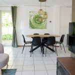 Großer Wohnraum mit angrenzender Küche und Essbereich, Flur, Badezimmer mit Badewanne und Waschbecken, separates WC mit Handwaschbecken. Im Wohnzimmer ist eine Flatscreen TV,mit deutschen Programmen, eine gemütliche sitzkombination, Offenes Kamin, wlan internet, bodenhohe Fenster und große Tür zur geräumig plattierten Außenterrasse mit Übergang zum Vorgarten. Die Einbauküche ist komplett eingerichtet mit Spülmaschine, Elektroherd, Backofen, Mikrowelle und Kuhlschrank. Es gibt eine große Tür zur ebenfalls geräumig plattierten Außenterrasse mit Übergang zum Hauptgarten.