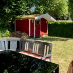 (Berging) ist ein großer, gemauerter Ersatzkeller mit Waschmaschine, Bügelbrett, Staubsauger, Regalen, Gartenmöbeln, Grill und Unterstellmöglichkeit für Fahrräder.