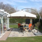 waar ook de tuinmeubels staan, en een glijbaan voor de kleintjes.