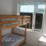 De tweede slaapkamer heeft twee eenpersoons bedden van 90 x 200 en een losse kledingkast.