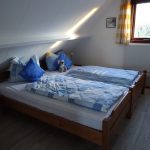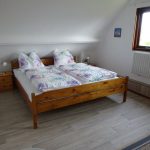 Bovenverdieping: Op de bovenverdieping bevinden zich drie slaapkamers, en een aparte toilet met wasbak. Er is een grote slaapkamer met een tweepersoons bed 180×200, wastafel, inbouw kastenwand en nachtlampjes. De andere slaapkamer heeft twee eenpersoons bedden 90×200, nachtlampjes en een commode. De derde slaapkamer heeft 2 eenpersoons bedden 90×200, nachtlampjes en een kledingkast. Alle bedden zijn voorzien van eenpersoons dekbedden en kussens.