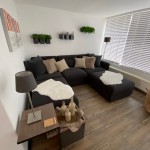 Geraümigen Wohnzimmer mit gemütlichen Sitzecke/Schlafsofa.