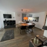 Im Wohnzimmer befinden sich ein Sitzecke/Schlafcouch, Kaffetisch, Essbereich mit 5 Stühlen,