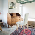 In der offenen Galerie befinden sich ein fünftes Bett, ein Sektretär, Spiele und Bücher.