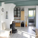 Der helle lichtdurchflutete Wohnraum mit Kaminofen lädt bei schlechtem Wetter zu gemütlichen Abenden mit W-Lan,