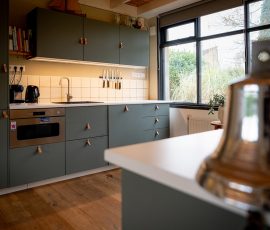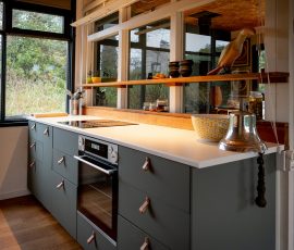 Induktionskochfeld, Mikrowelle mit Backofenfunktion, Kühl-/Gefrierschrank, Geschirrspüler,