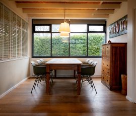 Großzügiger Essbereich mit sechs Stühlen.