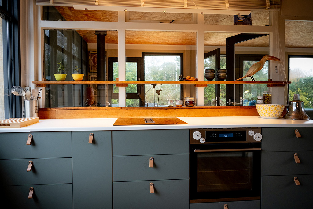 Die angrenzende offene Küche ist komplett ausgestattet.