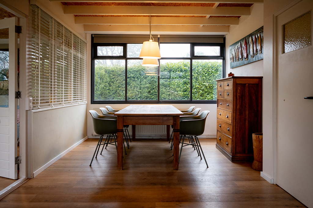 Großzügiger Essbereich mit sechs Stühlen.