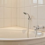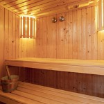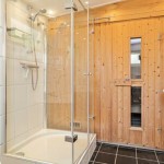 Badezimmer mit Whirpool Badewanne, Duschkabine, Sauna, Waschbecken und Toilet