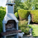 komplett mit Sitzgelegenheiten wie einer Gartengarnitur mit 4 Stühlen und der Möglichkeit zum Grillen.