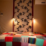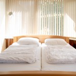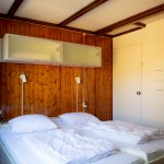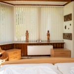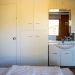 1 x Doppelbett (2 x 90 x 200), Schreibtisch, großer Wäscheschrank, Waschbecken mit Unterschrank.