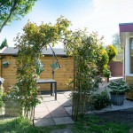 Der wunderschön eingerichtete Garten verfügt über eine gemütliche Terrasse zum Verweilen,