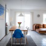 Einem großem Tisch für bis zu 6 Personen mit passenden Stühlen.