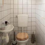 Auf den Erdgeschoss befindet sich eine separate Toilette mit kleinem Waschbecken.