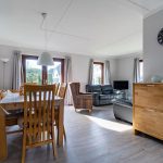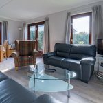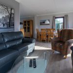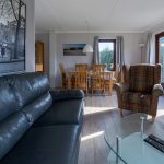 Heimeliger Wohn-/Essbereich mit zwei einladenden Ledersofas, 2 Sitzstühle, Couchtisch, Stehlampe (groß und Klein) Schranken usw. Flatscreen Fernseher mit Kabelanschluss und Sat-Antenne, Radio, DVD Spieler und Kostenloze Wlan.