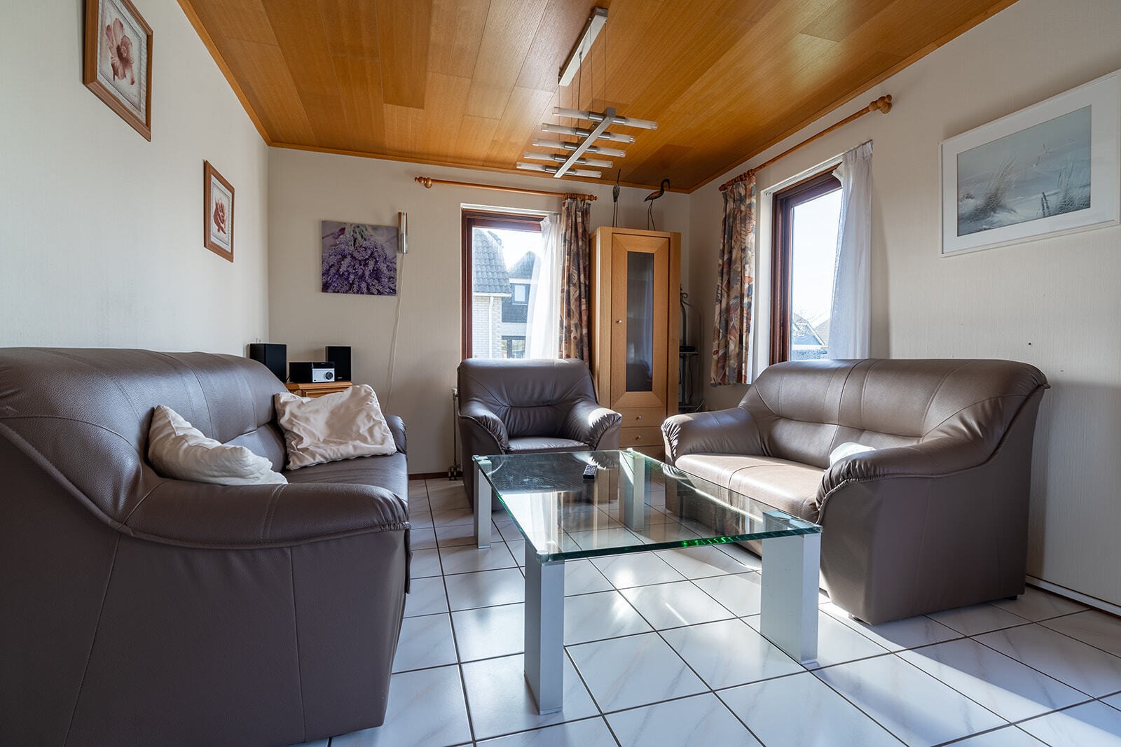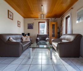 In der ebenerdigen Etage finden Sie ein großes gemütlich eingerichtetes Wohnzimmer,