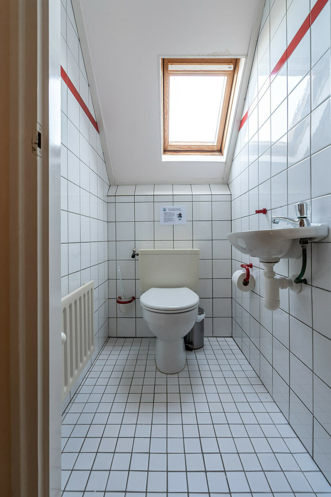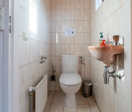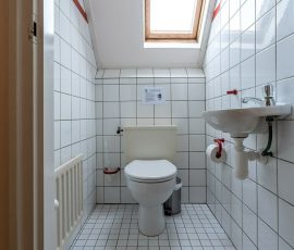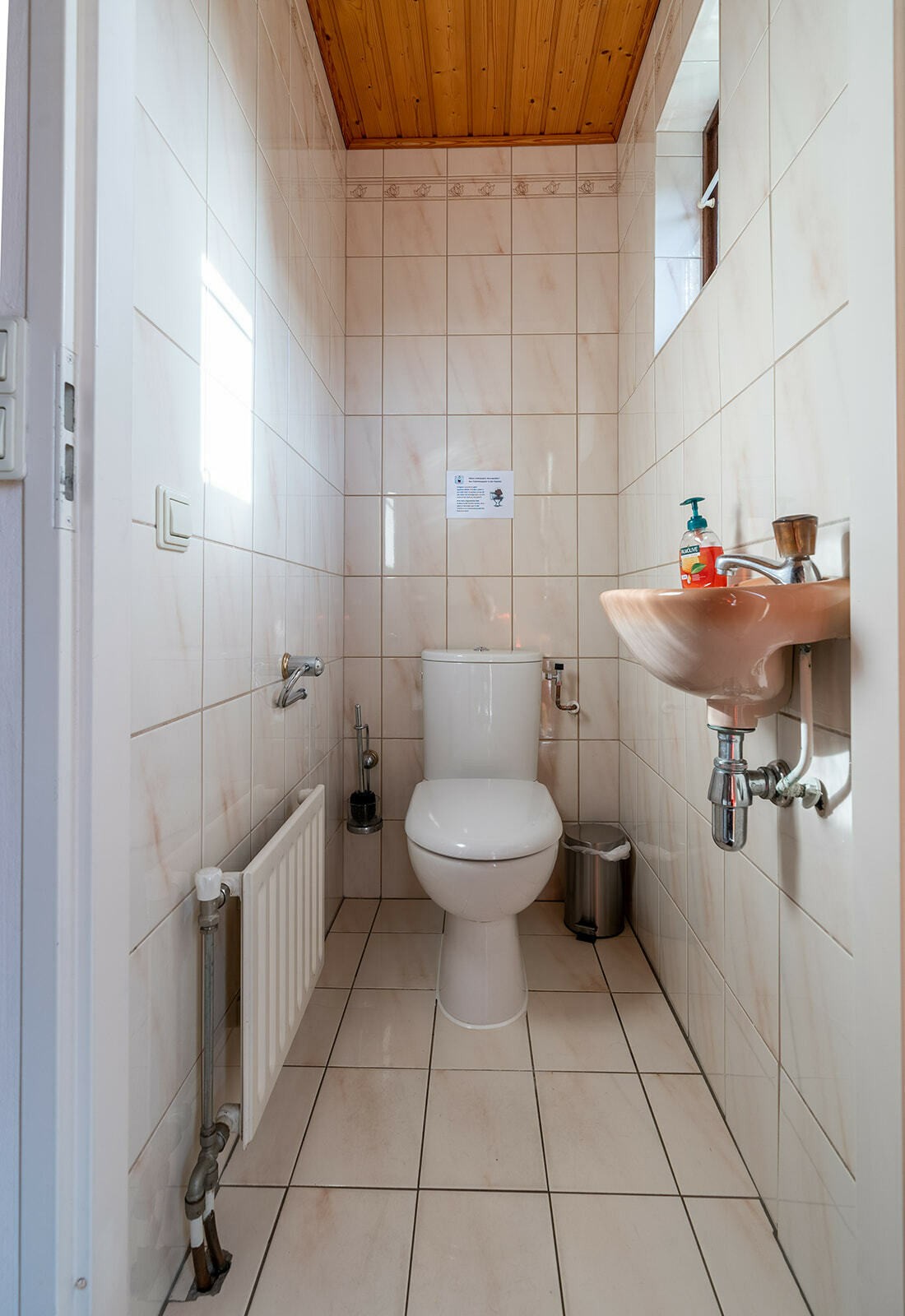 Auf jeder Geschossebene befindet sich eine separate Toilette mit kleinem Handwaschbecken.