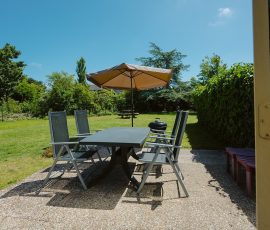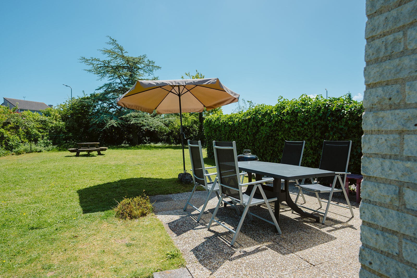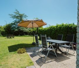 mit Gartentisch und einen Sonnenschirm stehen Ihnen zur Verfügung. Hier haben nicht nur Ihre Kinder genug Platz