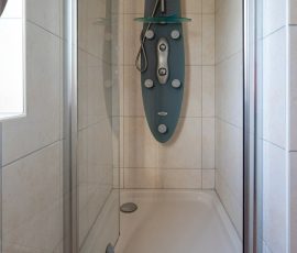 Badezimmer mit Dusche und drei Schlafzimmern. Direkt am Haus stehen Ihnen zwei Stellplätze zur Verfügung.