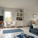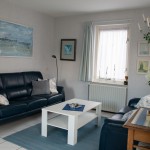Wohnzimmer Sitzgruppe drei und zwei, Sessel, Schrank, Wohnzimmertisch, Stehlampe (groß und Klein), SMART-SAT-TV mit internationalen Programmen, Satellitenschüssel, Radio mit CD-Player, WLAN – Internet.