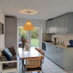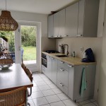 Küchenbereich In der Küche ist ein kompletter Küchenblock eingebaut, Hänge- und Unterschränke, Spülbecken, Geschirrspülmaschine, Dunstabzugshaube, sowie ein 4 Flammen Gasherd , Mikrowellengerät, Kaffeemaschine, Wasserkocher, Toaster, Kühlschrank mit Gefrierschrank, Töpfen und Pfannen, für 6 Personen ausreichend Geschirr, Gläser, Bestecke. Einem großem Tisch für bis zu 6 Personen mit passenden Stühlen. Durch die Terrassentür erreichen Sie den großen umschlossenen Garten.