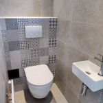Sanitärbereich Ebenerdiges Badezimmer mit Dusche Waschbecken, zweiteiligem Badezimmerset und einem Schrank. Auf jeder Geschossebene befindet sich eine separate Toilette mit kleinem Waschbecken. Im großen Schlafzimmer befindet sich ein Waschbecken mit Spiegel.