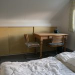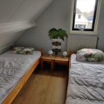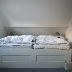 Obergeschoss/Schlafbereich In der oberen Etage gibt es drei Schlafzimmern (1, 2, 3) und eine zweite, separate Toilette. Schlafzimmer (1) ist etwas größer als die anderen beiden Schlafzimmer und hat ein Doppelbett (180×200 cm) Spiegel, Waschbecken und einen Einbauschrank. Das Schlafzimmer (2) je 2 Einzelbetten (90×200 cm) und eine Einbauschrank. Das Schlafzimmer (3) verfügt über je 2 Einzelbetten (90×200 cm) und einem Einbauschrank. Alle Schlafzimmer haben Nachttische und Leselampen. Alle Betten haben Separate Matratzen, Matratzenschoner, Decken und Kopfkissen.