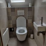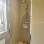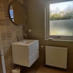 Sanitärbereich Ebenerdiges Badezimmer mit Dusche Waschbecken, zweiteiligem Badezimmerset und einem Schrank. Auf jeder Geschossebene befindet sich eine separate Toilette mit kleinem Waschbecken. Im großen Schlafzimmer befindet sich ein Waschbecken mit Spiegel.