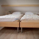 Bovenverdieping: Op de bovenverdieping ligt Laminaat en bevinden zich drie slaapkamers, en een aparte toilet met wasbak. Er is een grote slaapkamer met een tweepersoons bed 180×200, wastafel, inbouw kastenwand en nachtlampjes. De andere slaapkamer heeft twee eenpersoons bedden 90×200, nachtlampjes en een commode. De derde slaapkamer heeft 2 eenpersoons bedden 90×200, nachtlampjes en een kledingkast. Alle bedden zijn voorzien van eenpersoons dekbedden en kussens.