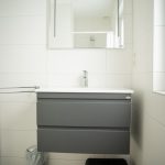 Sanitair: Benedenverdieping, douche met wastafel, badkamer set etc. Toilet beneden en boven met kleine wastafel, en een grote wastafel op de grote slaapkamer.