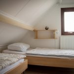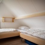 Bovenverdieping: Op de bovenverdieping ligt Laminaat en bevinden zich drie slaapkamers, en een aparte toilet met wasbak. Er is een grote slaapkamer met een tweepersoons bed 180×200, wastafel, inbouw kastenwand en nachtlampjes. De andere slaapkamer heeft twee eenpersoons bedden 90×200, nachtlampjes en een commode. De derde slaapkamer heeft 2 eenpersoons bedden 90×200, nachtlampjes en een kledingkast. Alle bedden zijn voorzien van eenpersoons dekbedden en kussens.